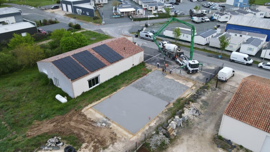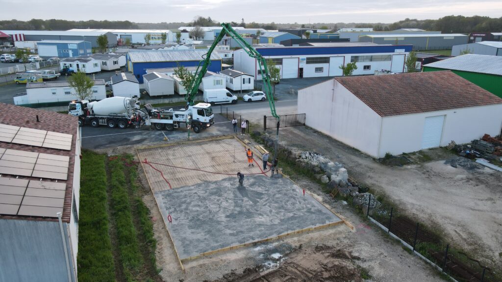 Phase 2 : Le béton est égalisé et lissé pour assurer une surface solide et uniforme.