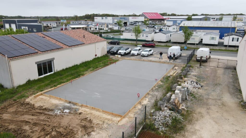 Le coffrage a été installé pour préparer le coulage de la dalle en béton.